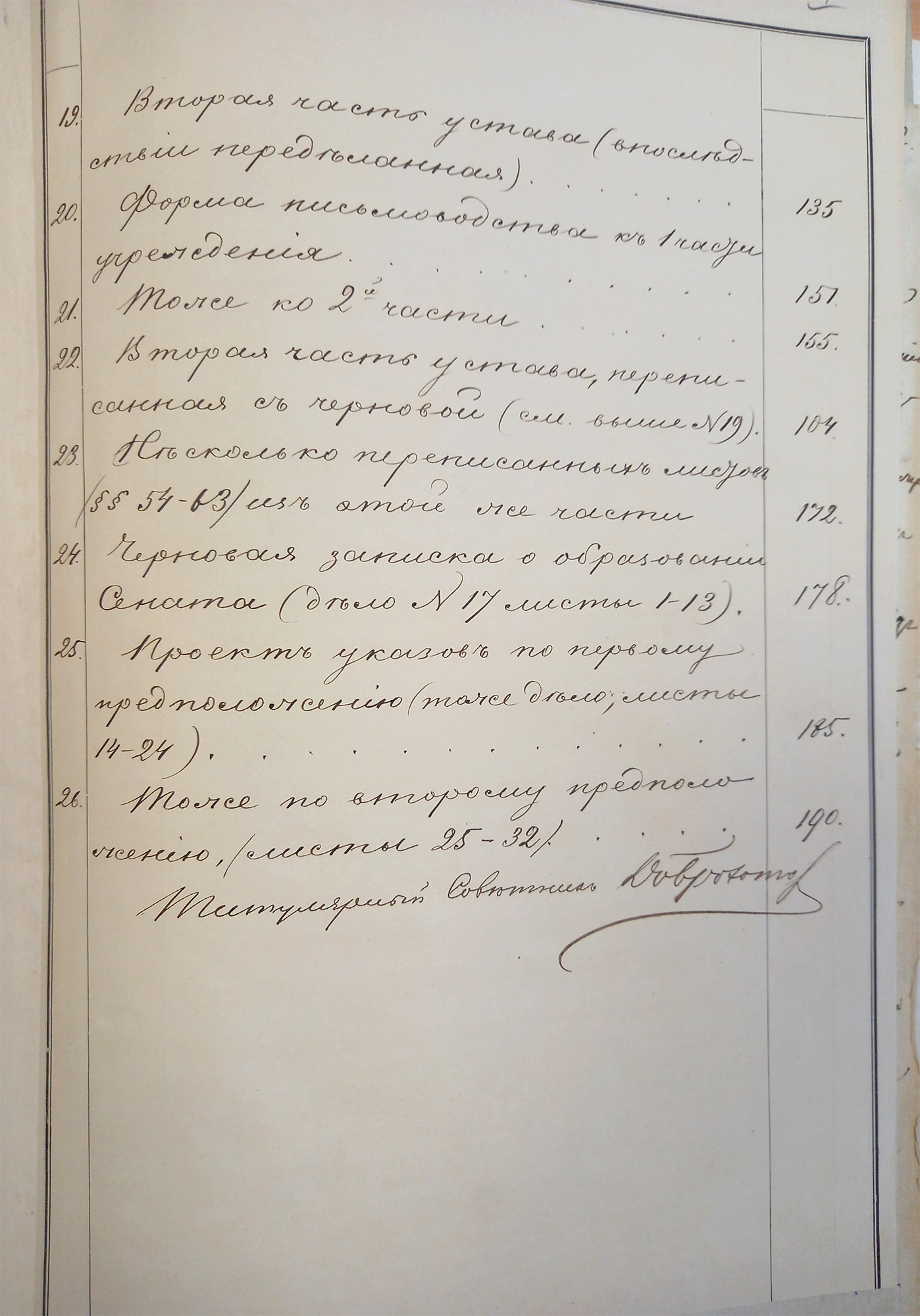 10. Авторизованная запись с подписью и датой рукой Сперанского.